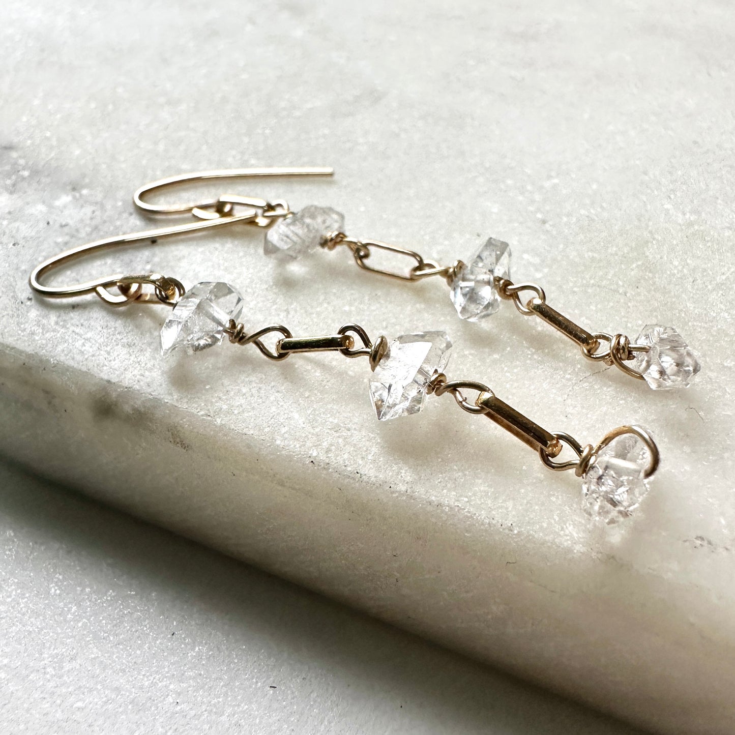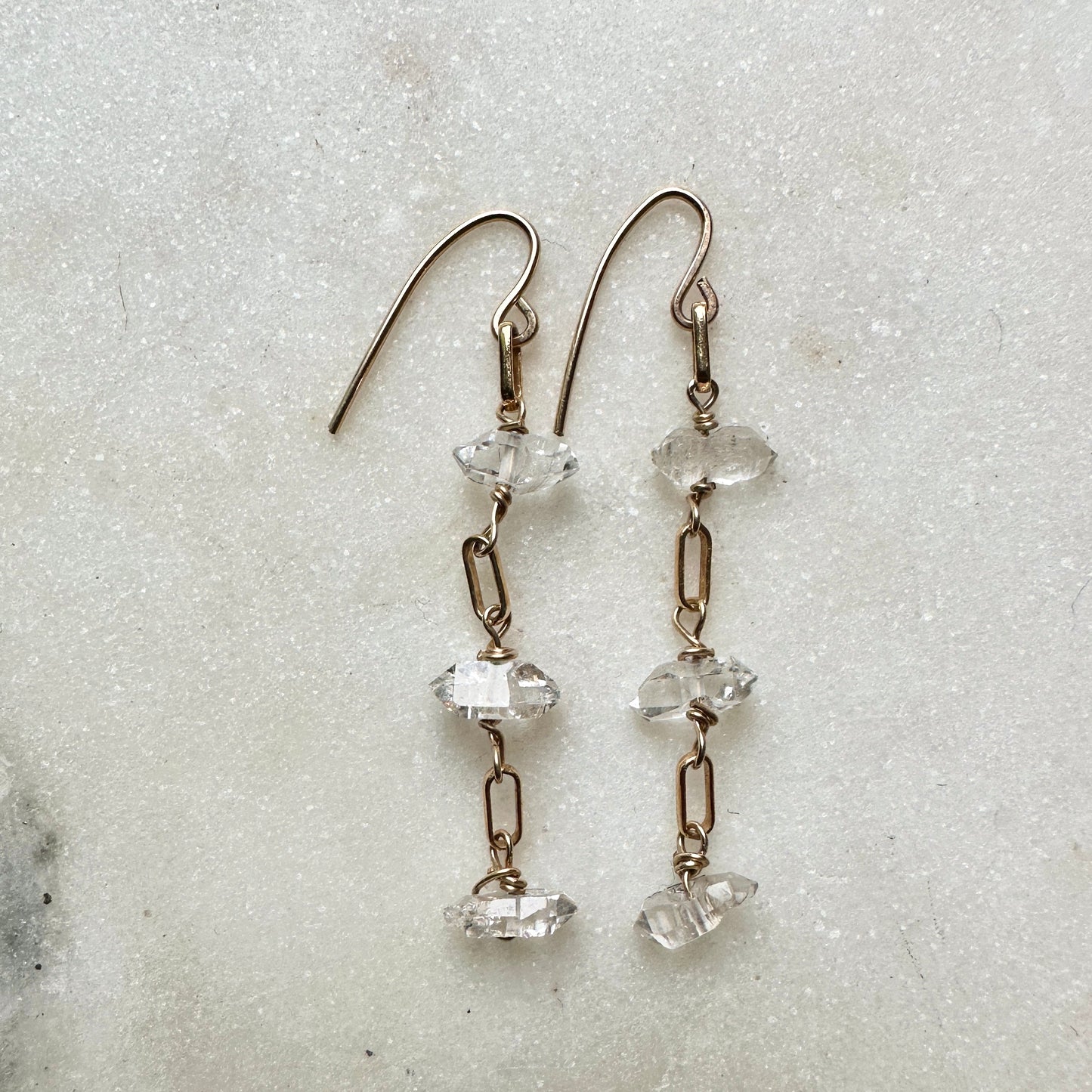 Grace Chainlink Trinity Earrings are made with herkimer diamonds and your choice of 14k goldfilled.