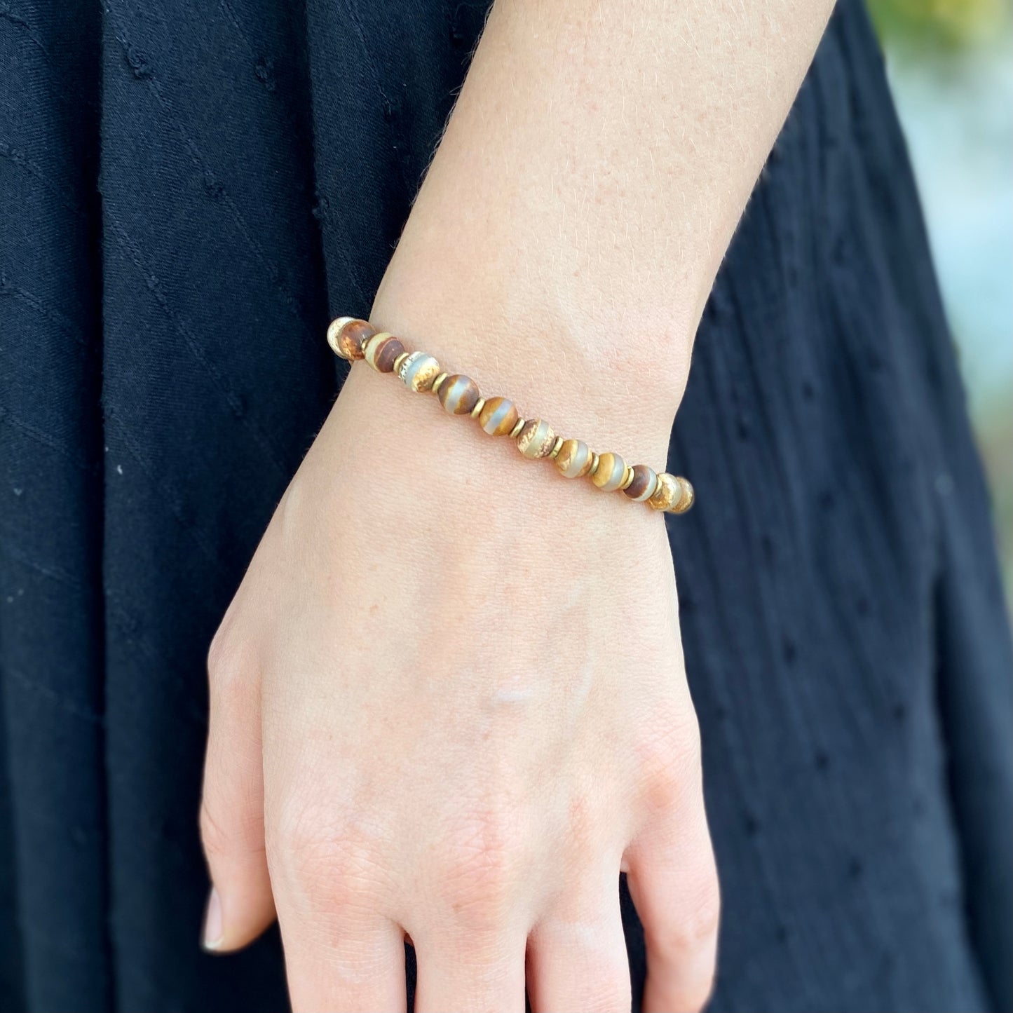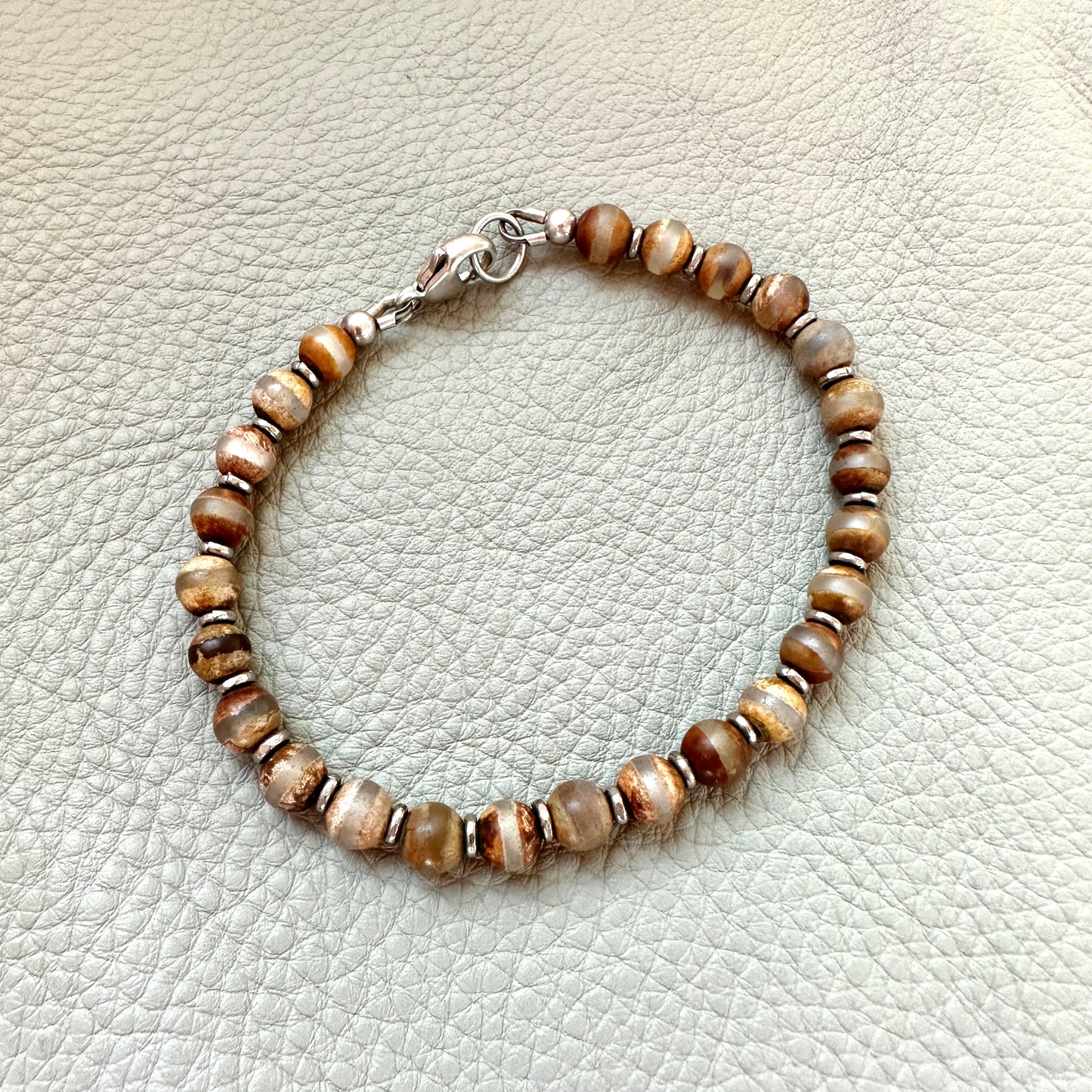 Light Brown Tibetan Agate Bracelet is made with African solid brass beads and a 14k gold filled clasp or African white metal beads and a sterling silver clasp.